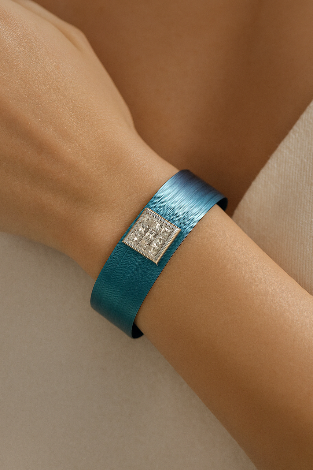 Bransoleta srebrna z tytanem jeans z kamieniami