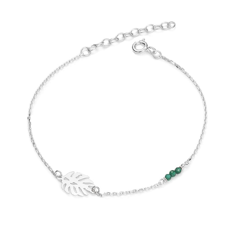 Bransoletka srebrna liść monstery z kamieniami