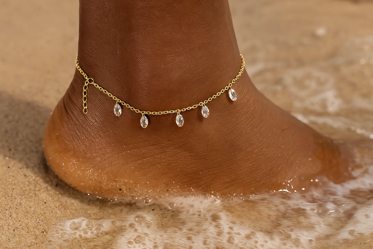 Bransoletka srebrna na nogę z cyrkoniami