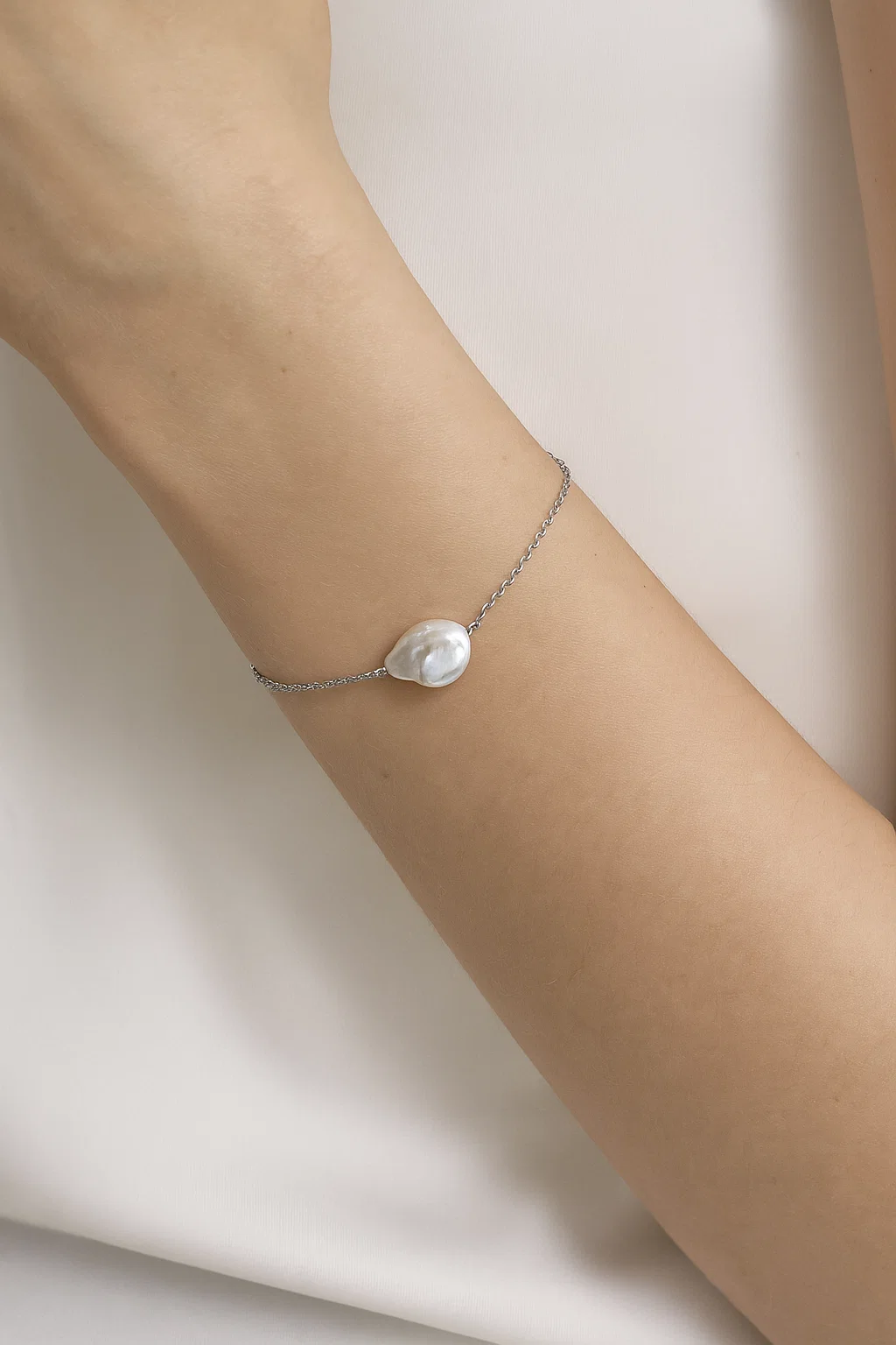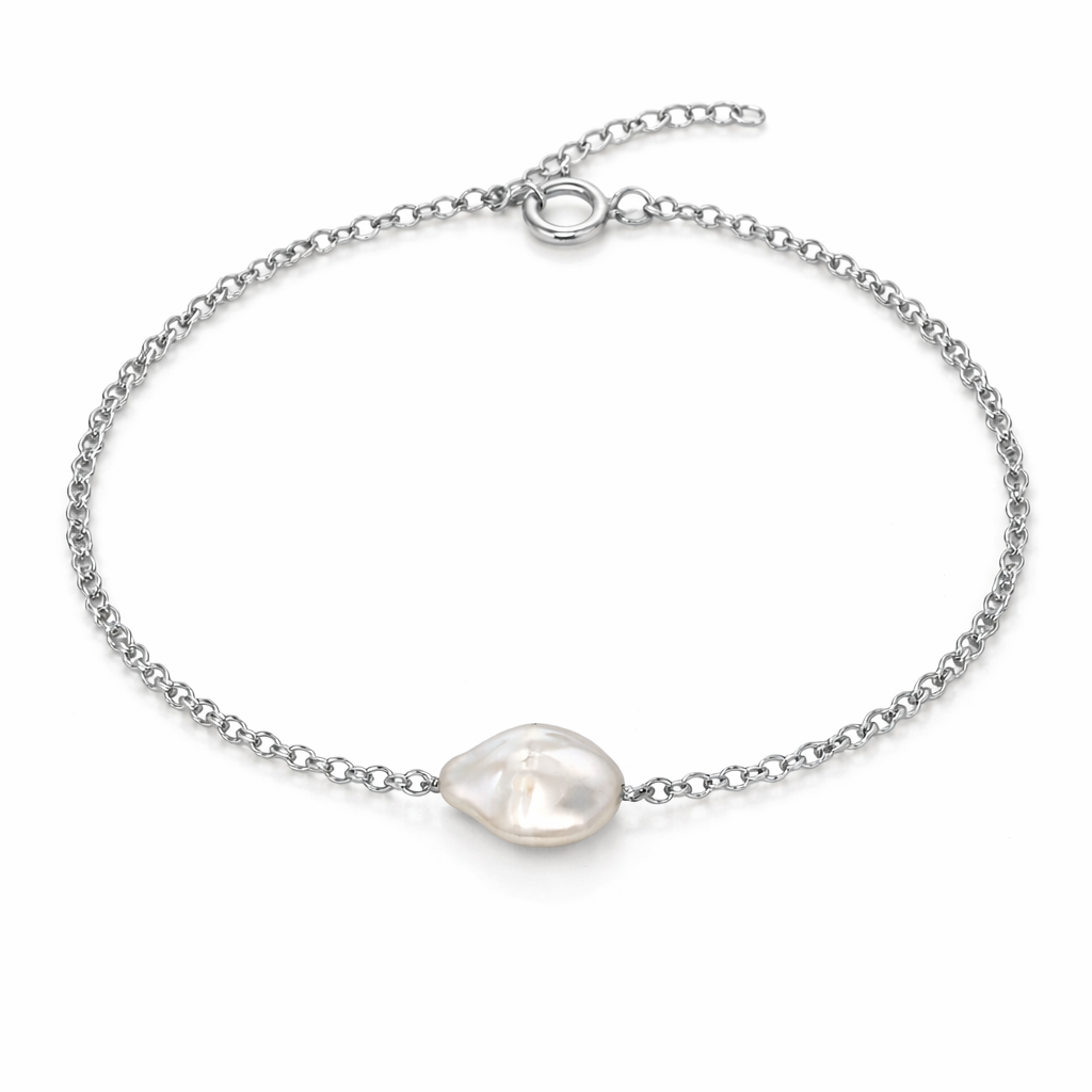 Bransoletka srebrna z dużą perłą naturalną