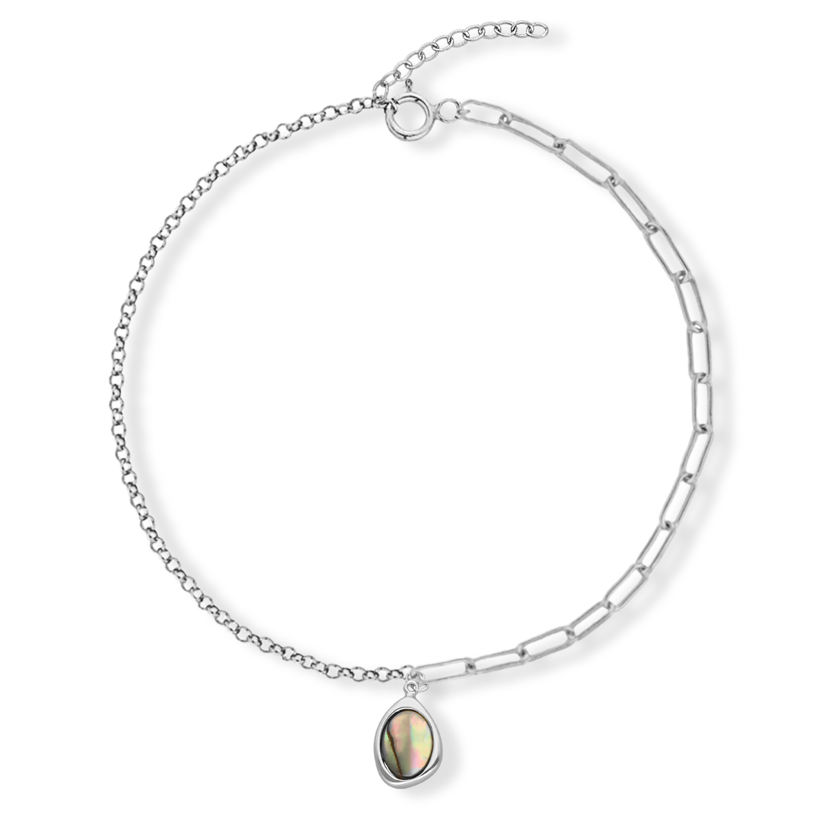 Bransoletka srebrna z dwóch łańcuszków z Muszlą