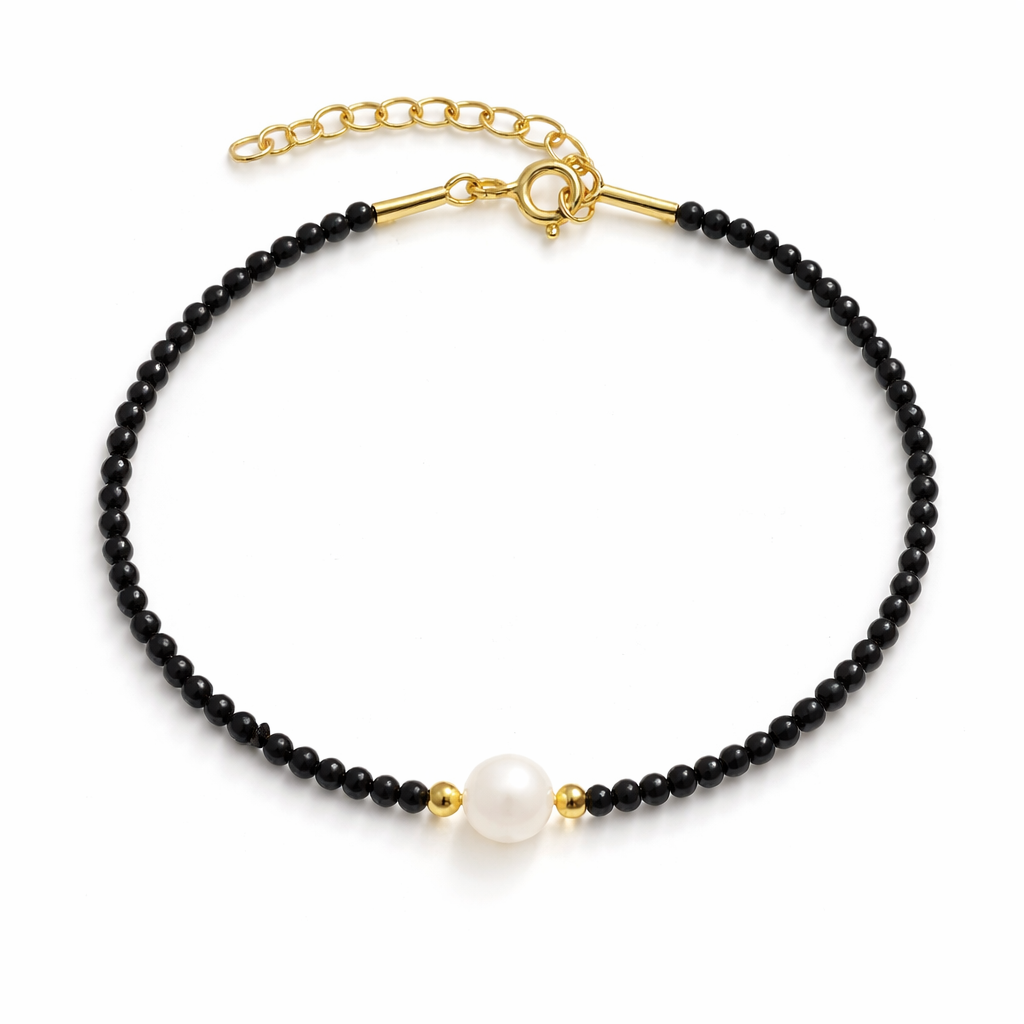 Bransoletka srebrna z kamieniami i perłą