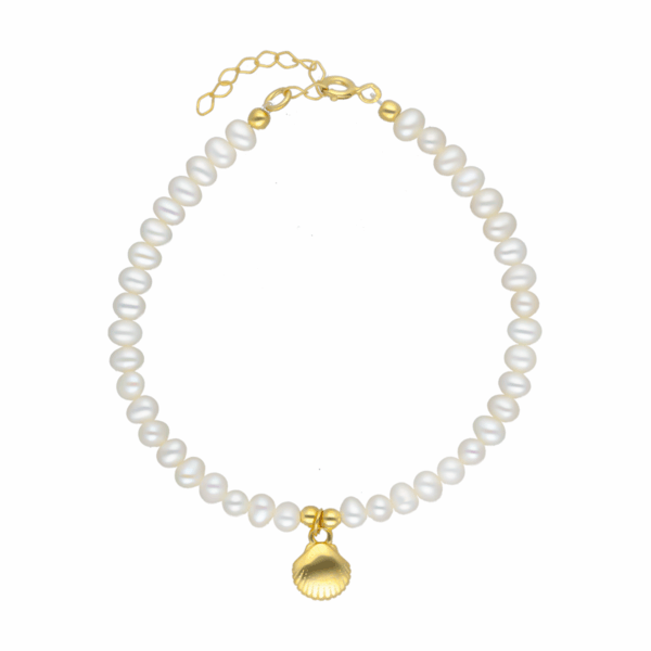 Bransoletka srebrna z pereł hodowlanych z muszelką