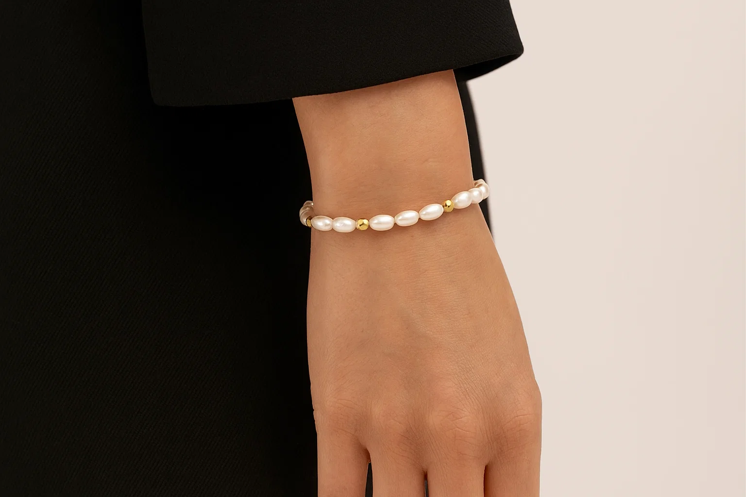 Bransoletka srebrna z pereł naturalnych z kuleczkami