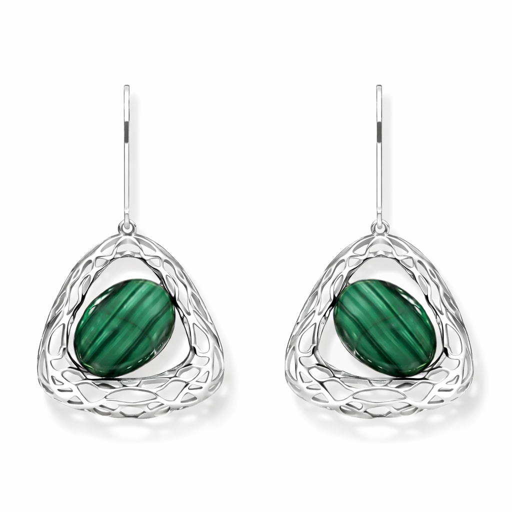 Kolczyki srebrne ażurowe z malachitem Triangle