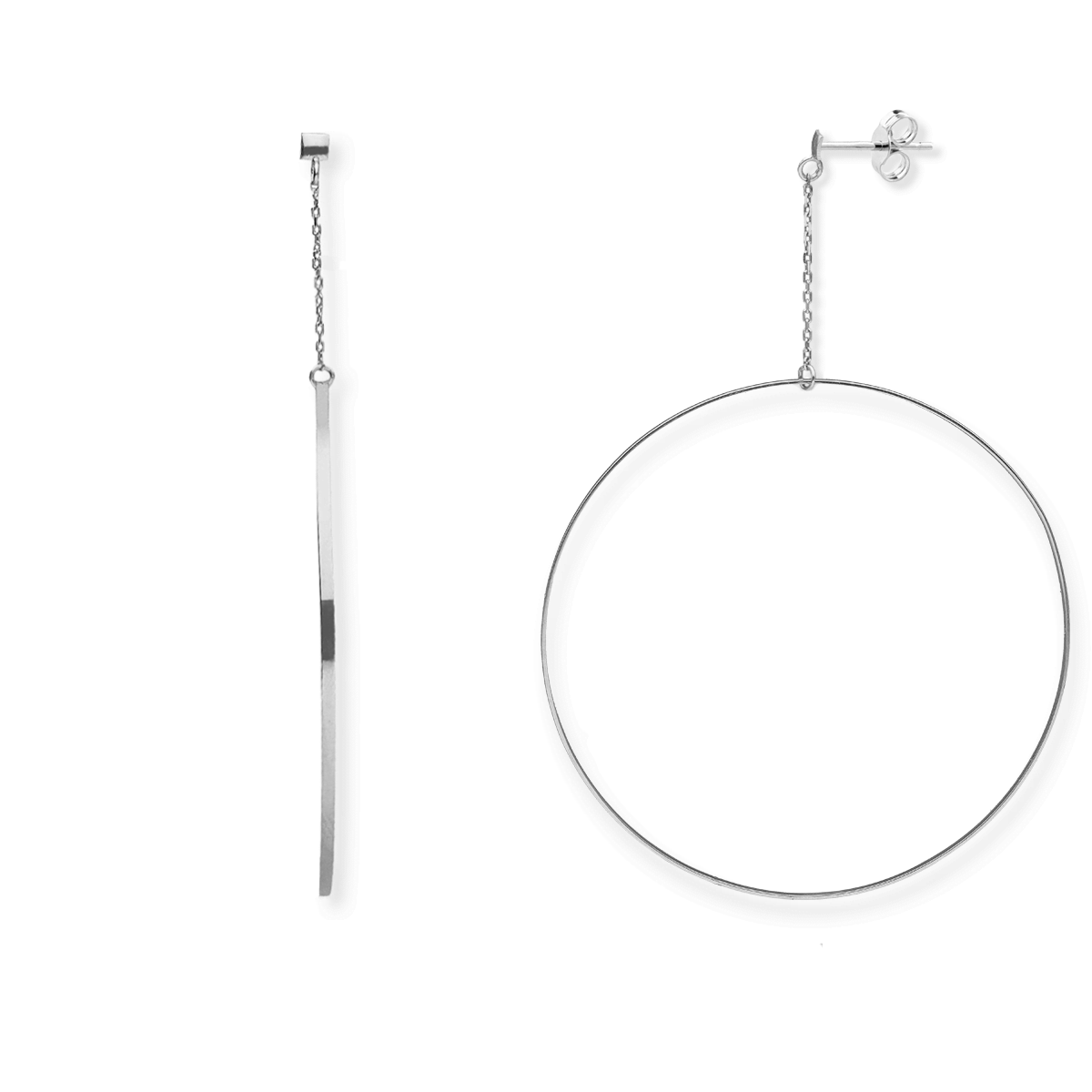 Kolczyki srebrne duże koła z łańcuszkiem
