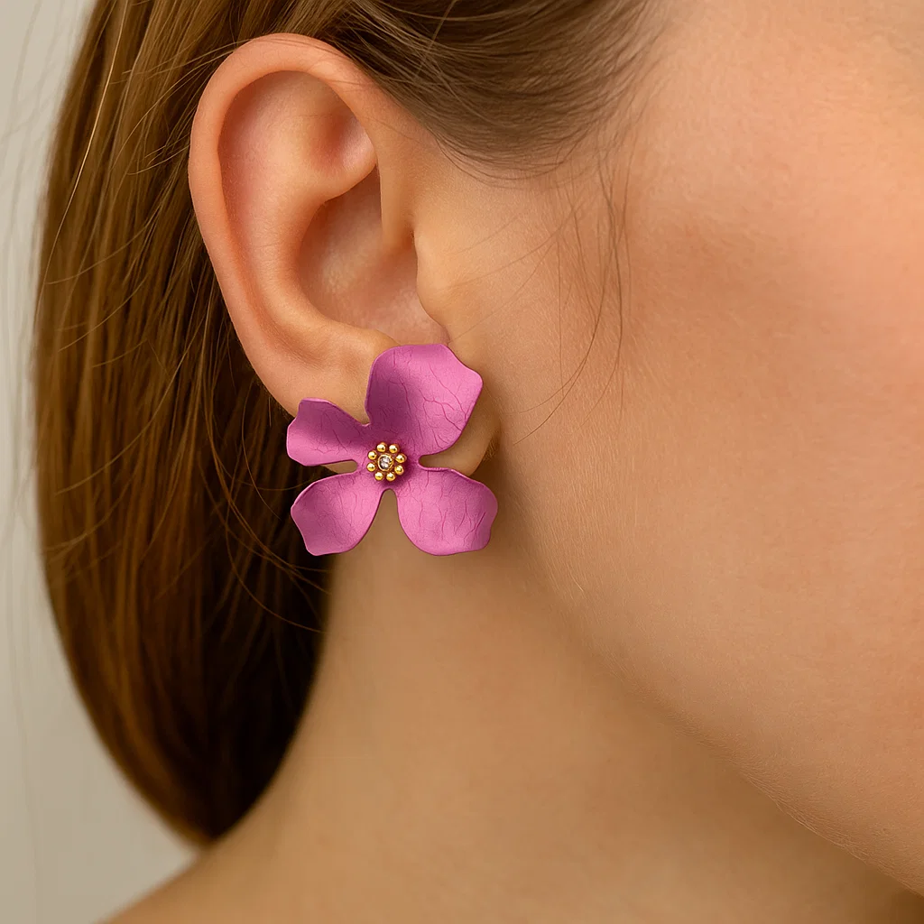 Kolczyki srebrne z tytanowym Kwiatem Różowym