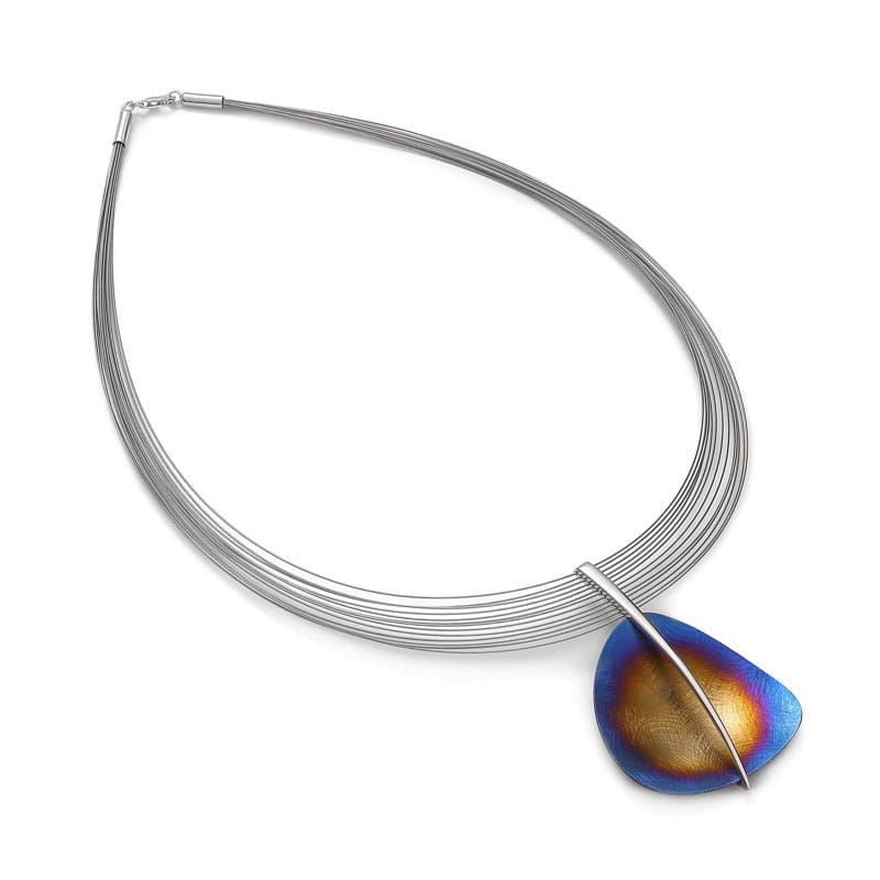 Kolia srebrna z linek stalowych z Tytanem Kelo