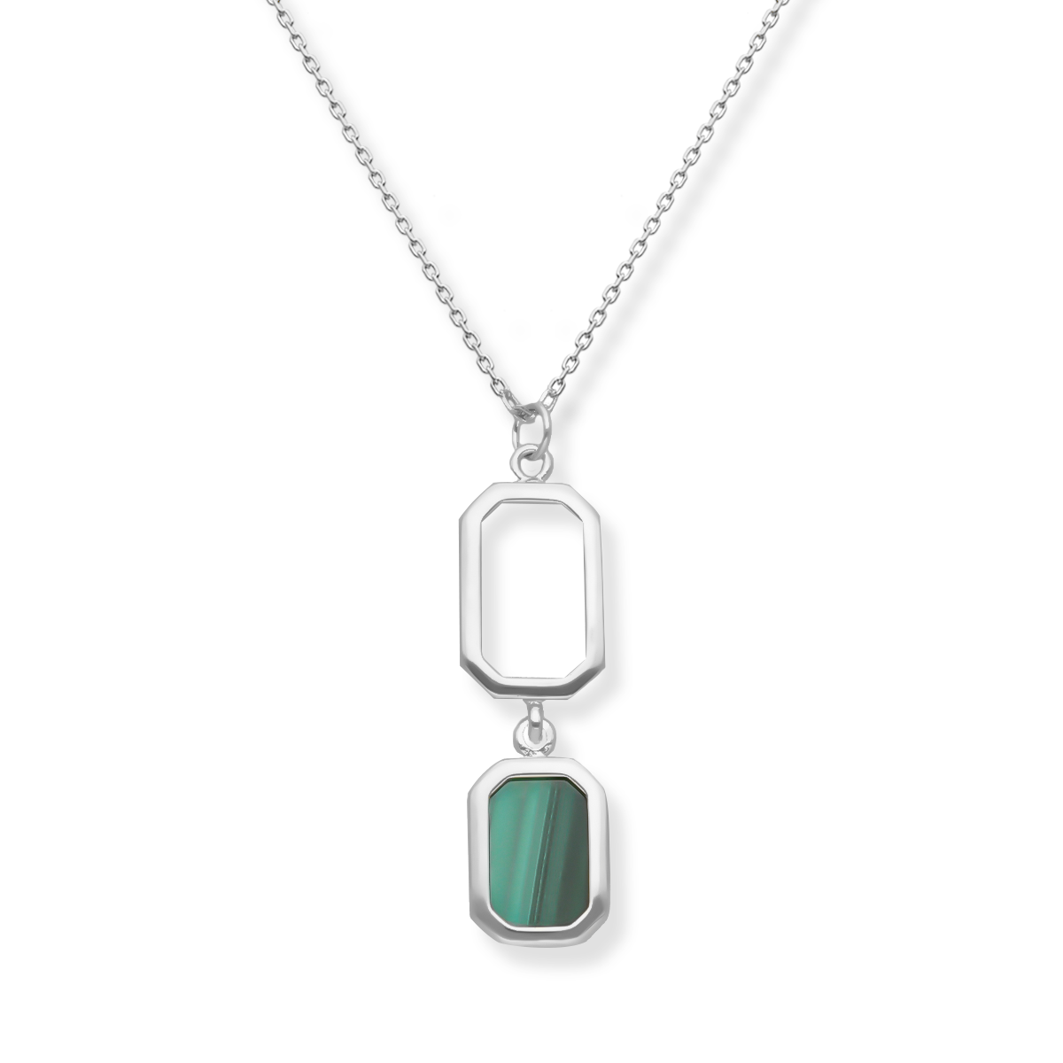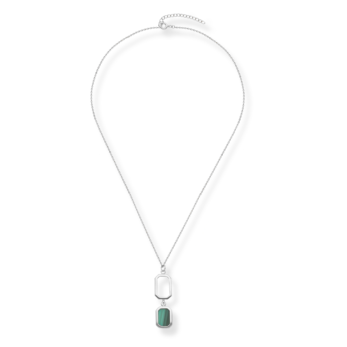 Naszyjnik srebrny double z malachitem