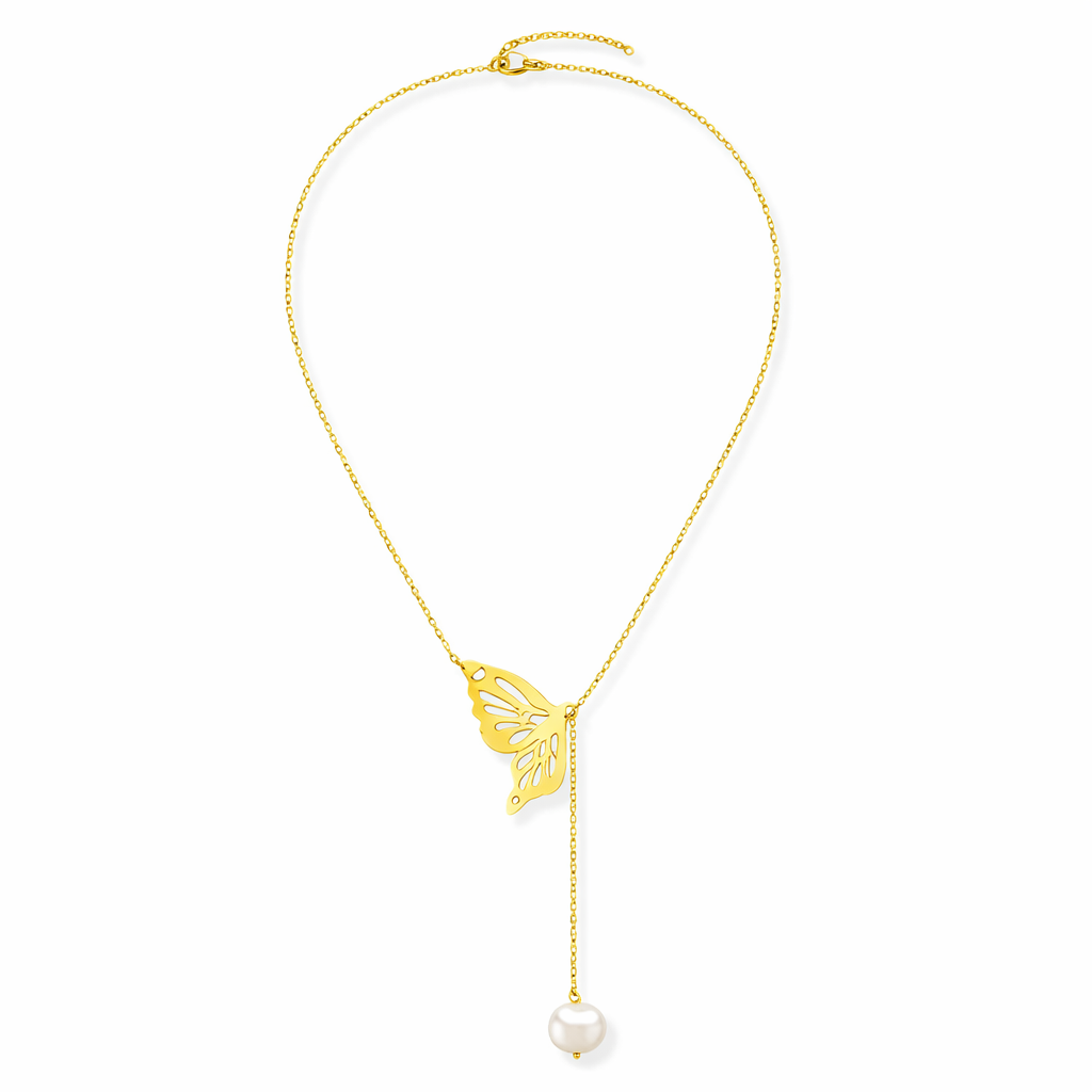 Naszyjnik srebrny krawatka Motyl z perłą naturalną