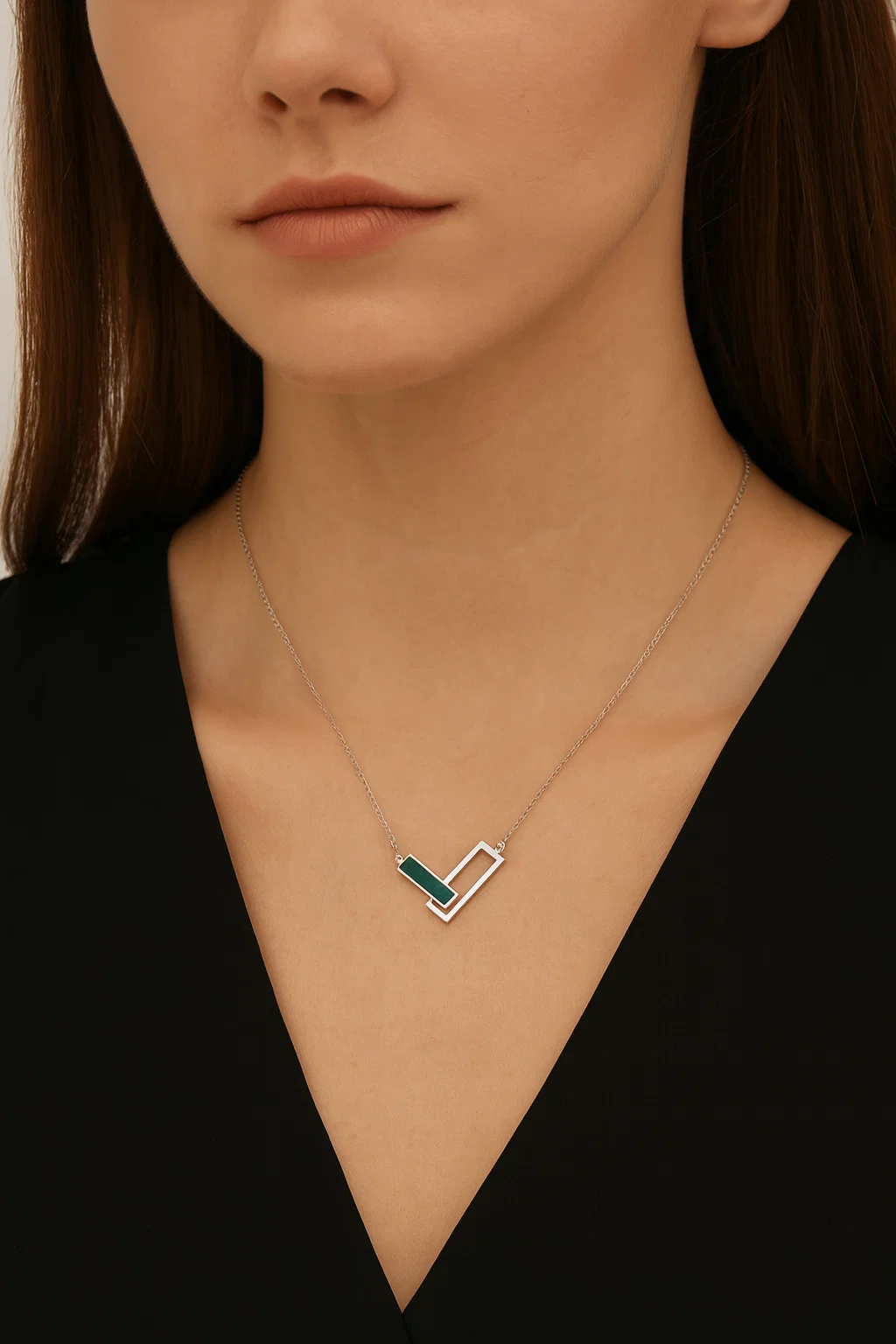 Naszyjnik srebrny malachit w ramce