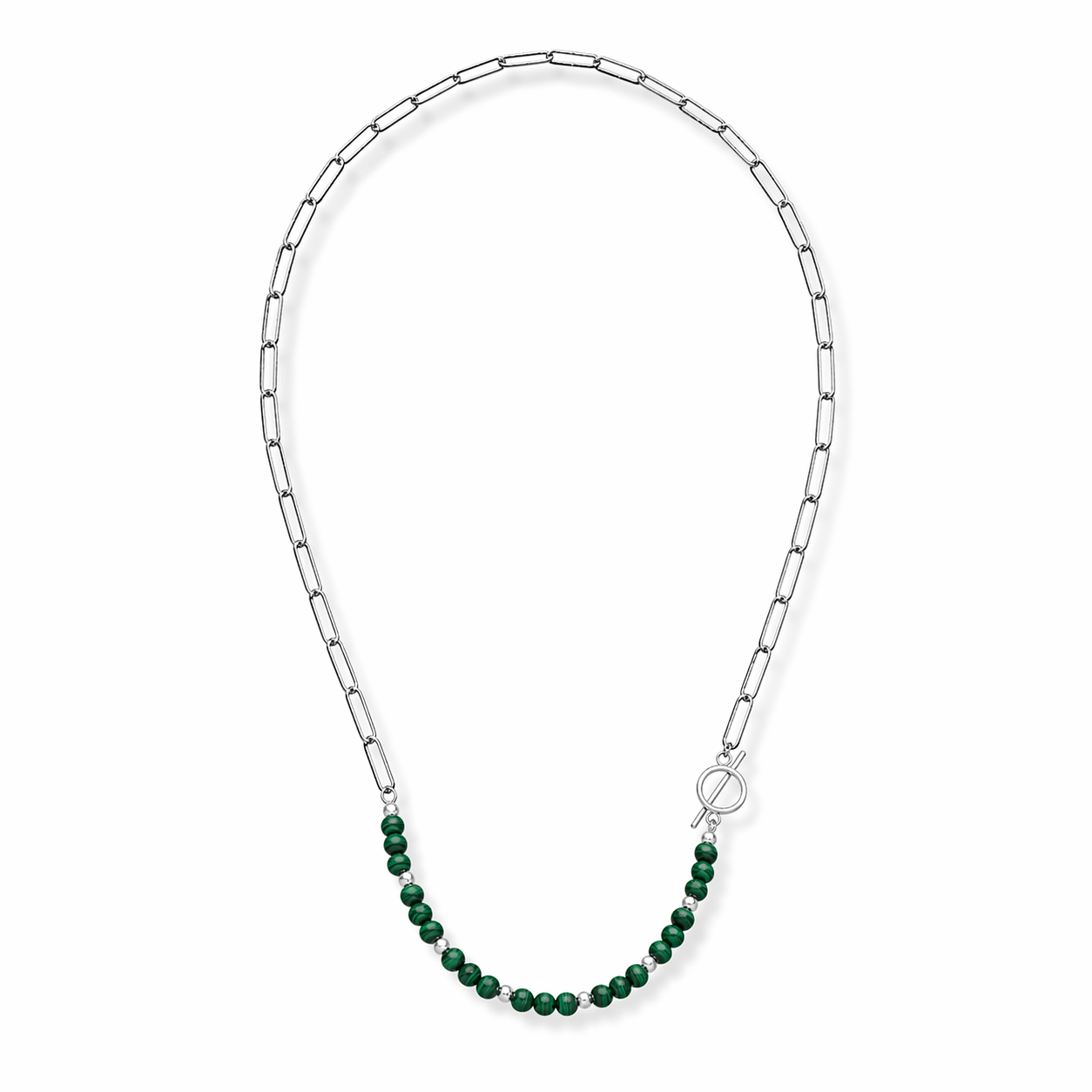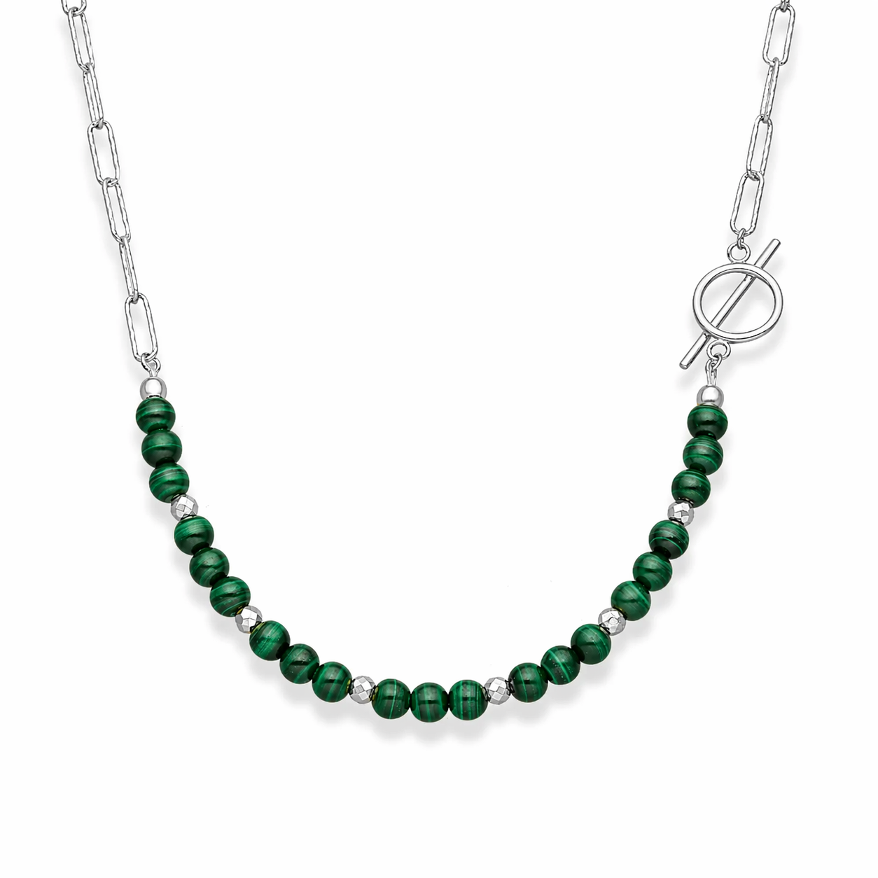 Naszyjnik srebrny spinacz diamentowy z malachitem