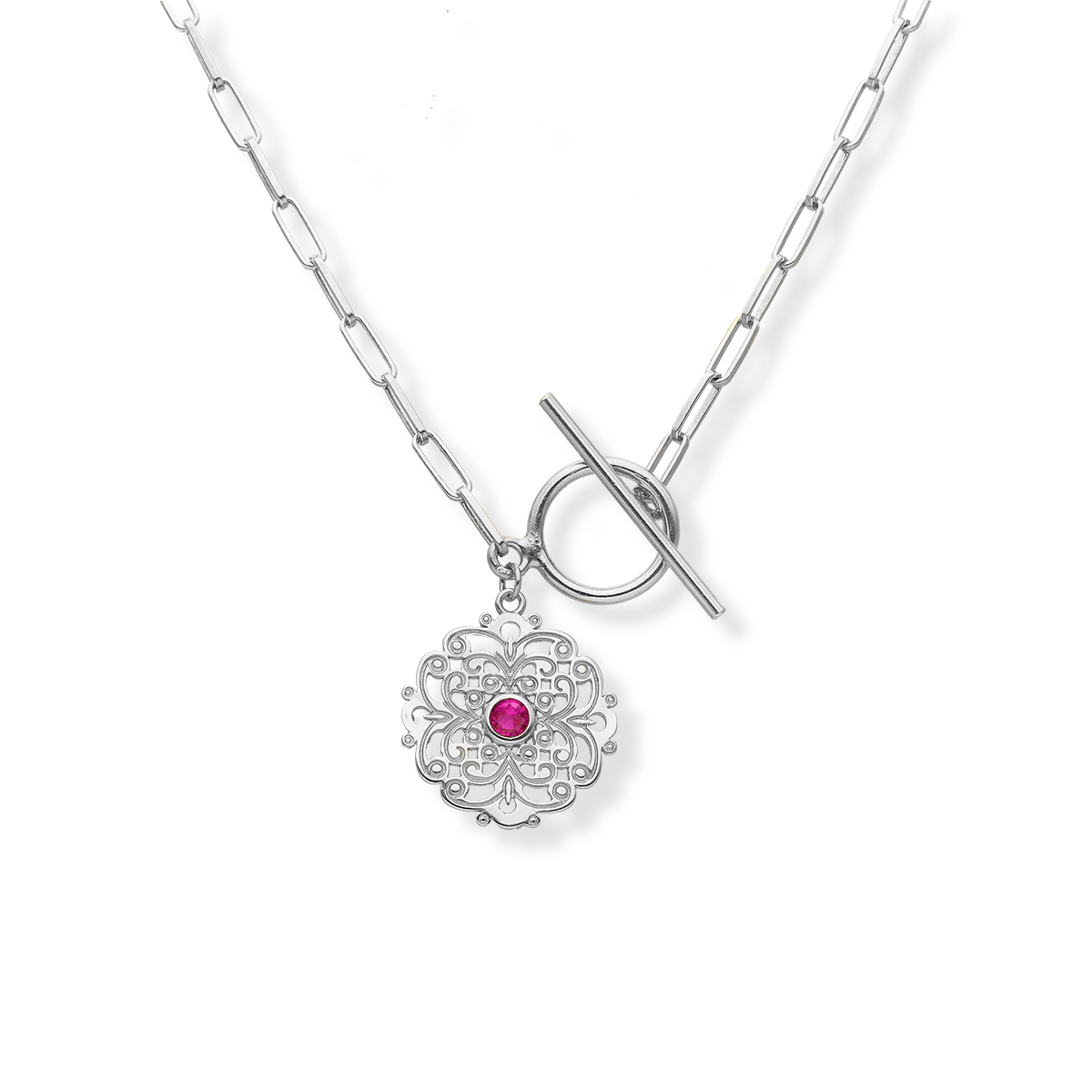 Naszyjnik srebrny z ażurem i kamieniem
