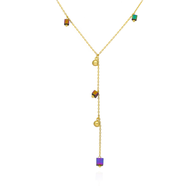 Niezwykle efektowny srebrny naszyjnik pokryty 24-karatowym złotem wraz z gustownymi kolorowymi hematytami to wyjątkowa propozycja dla wyjątkowych kobiet.
