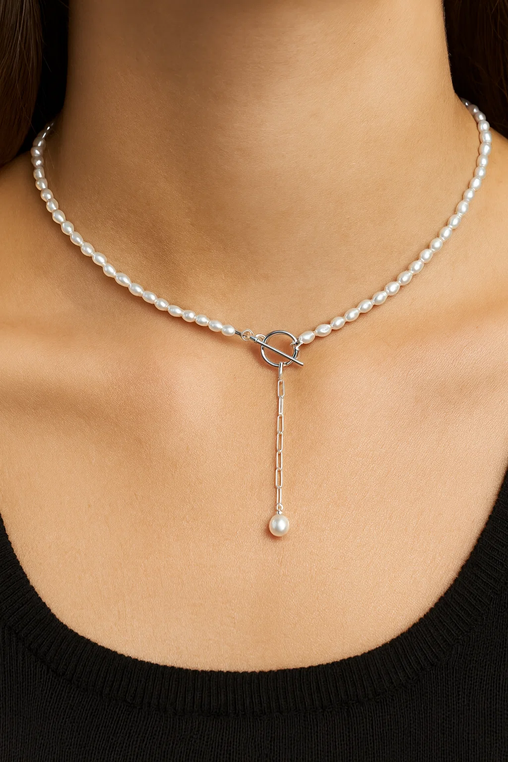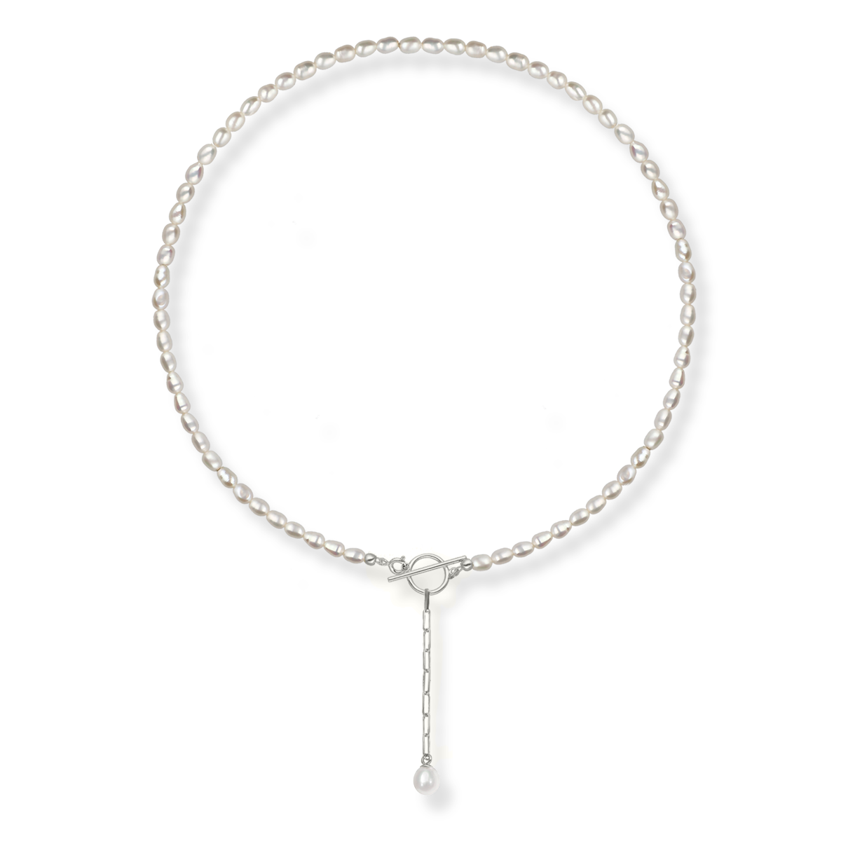 Naszyjnik srebrny z pereł naturalnych z wiszącą perłą