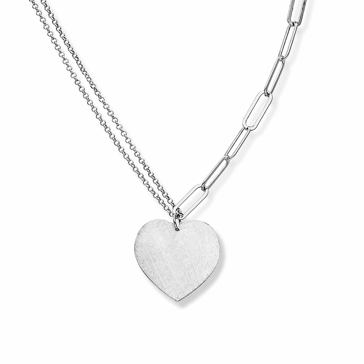 Naszyjnik srebrny z satynowanym sercem