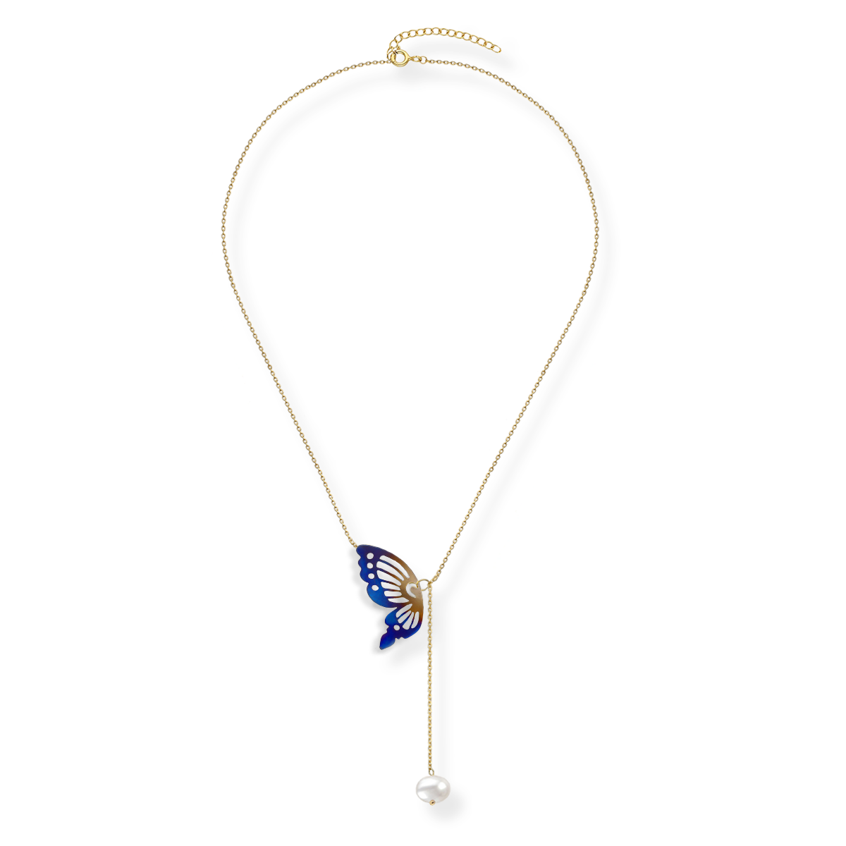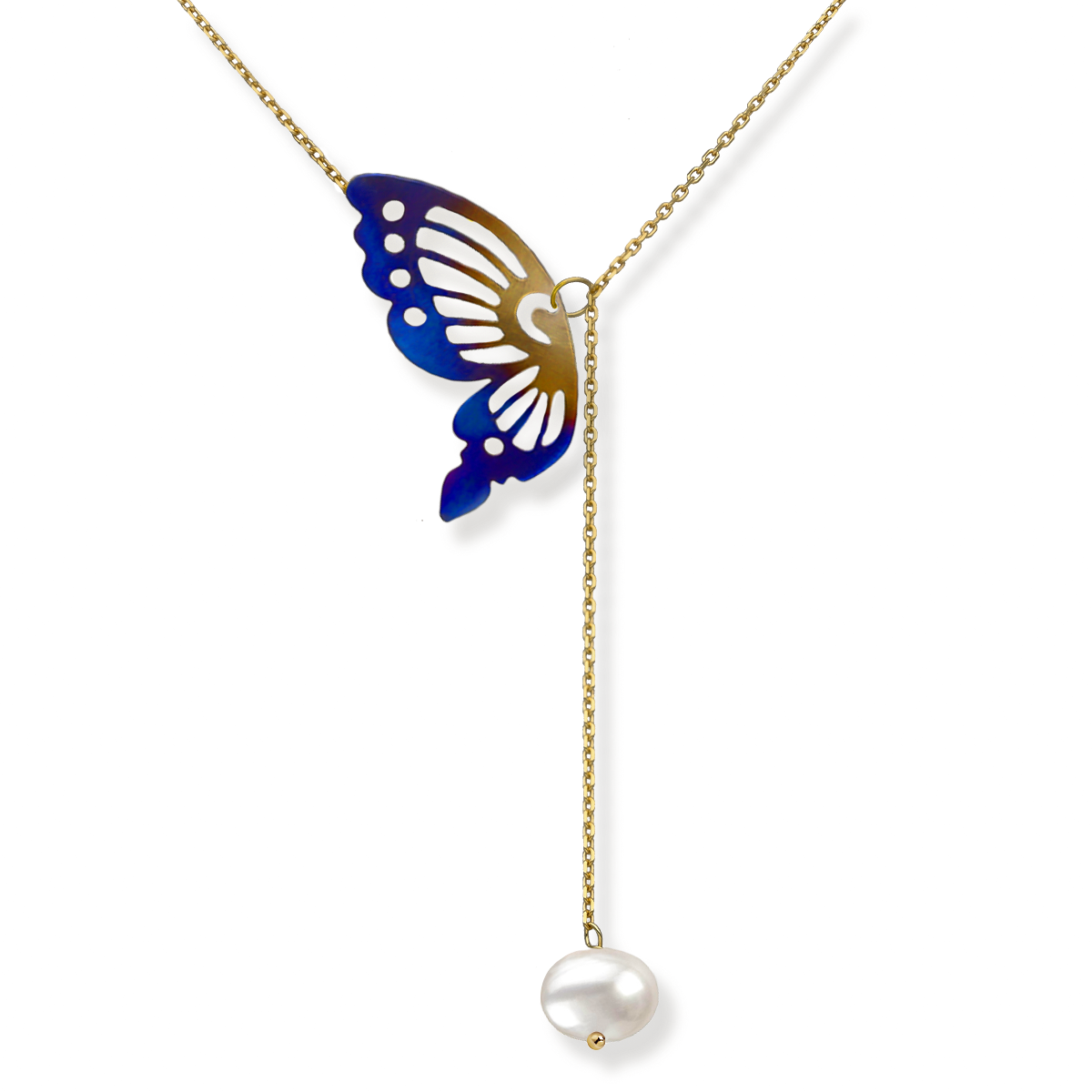 Naszyjnik srebrny z tytanem Motyl z perłą naturalną