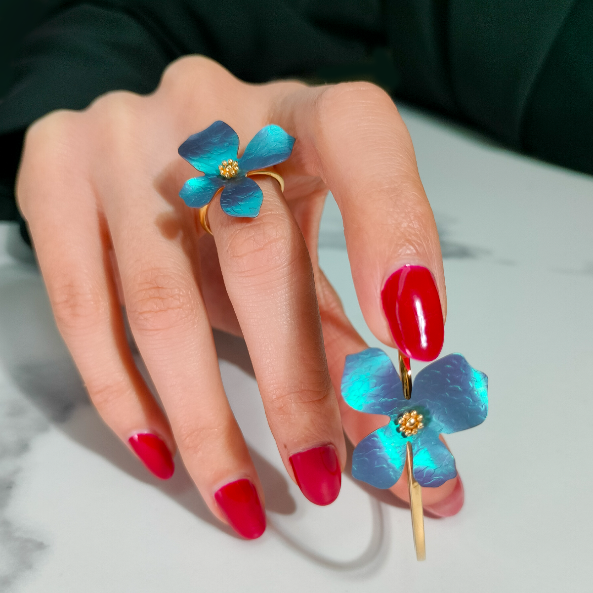 Pierścionek srebrny z tytanowym Kwiatem Jeans