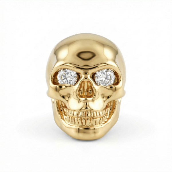 Rzeźbiarska czaszka wykonana ze srebra 925, pokryta 3 mikronami złota lub rodem.