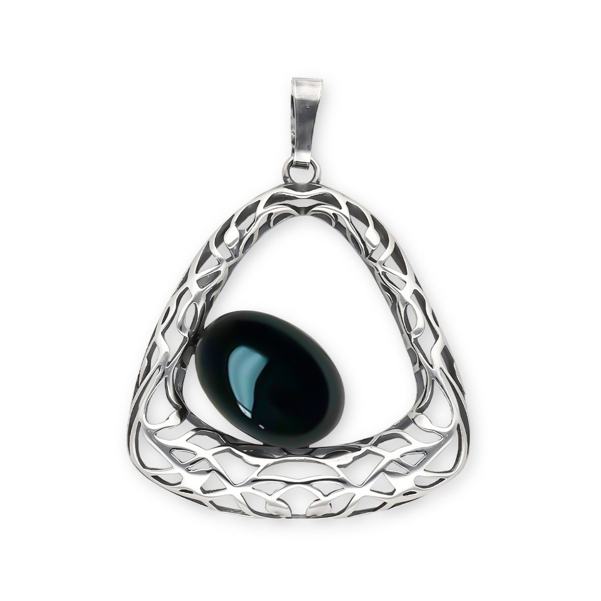 Wisiorek srebrny oksydowany z onyksem Triangle